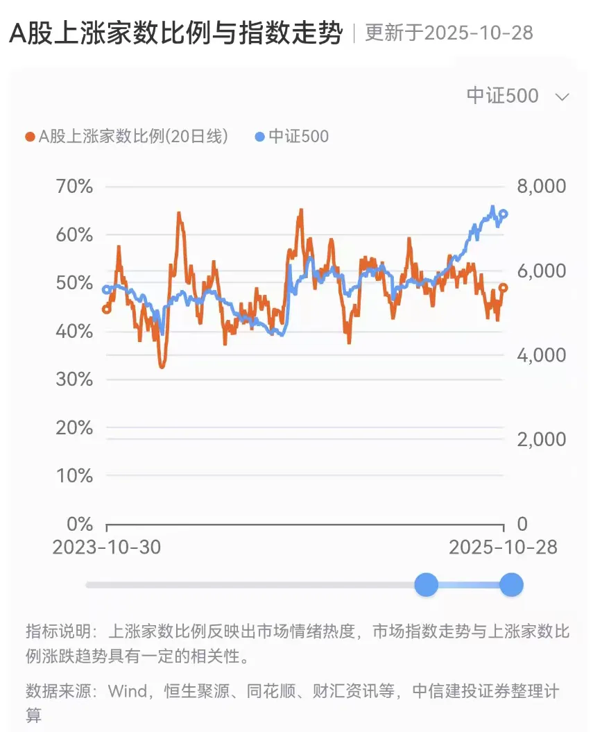 10月28日上涨家数比例为43.39%,较上一交易日下降18.4个百分点。