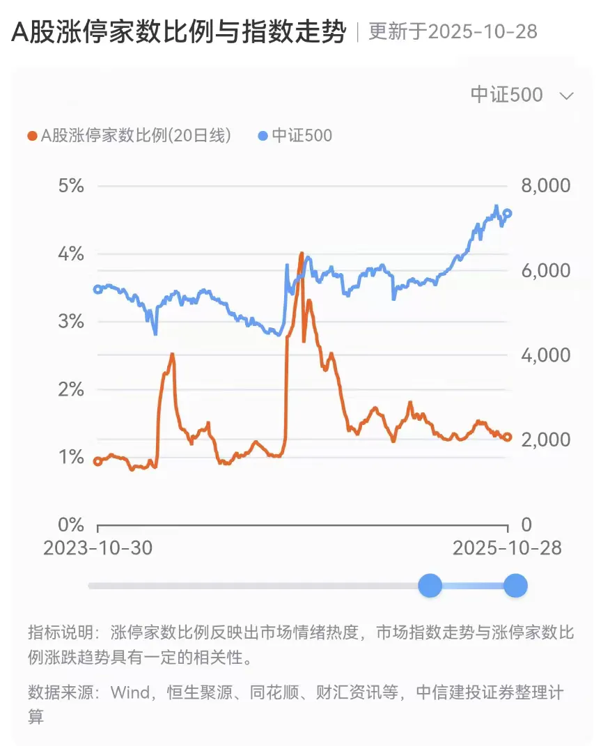 10月28日涨停家数比例为1.32%,较上一交易日上升0.15个百分点。