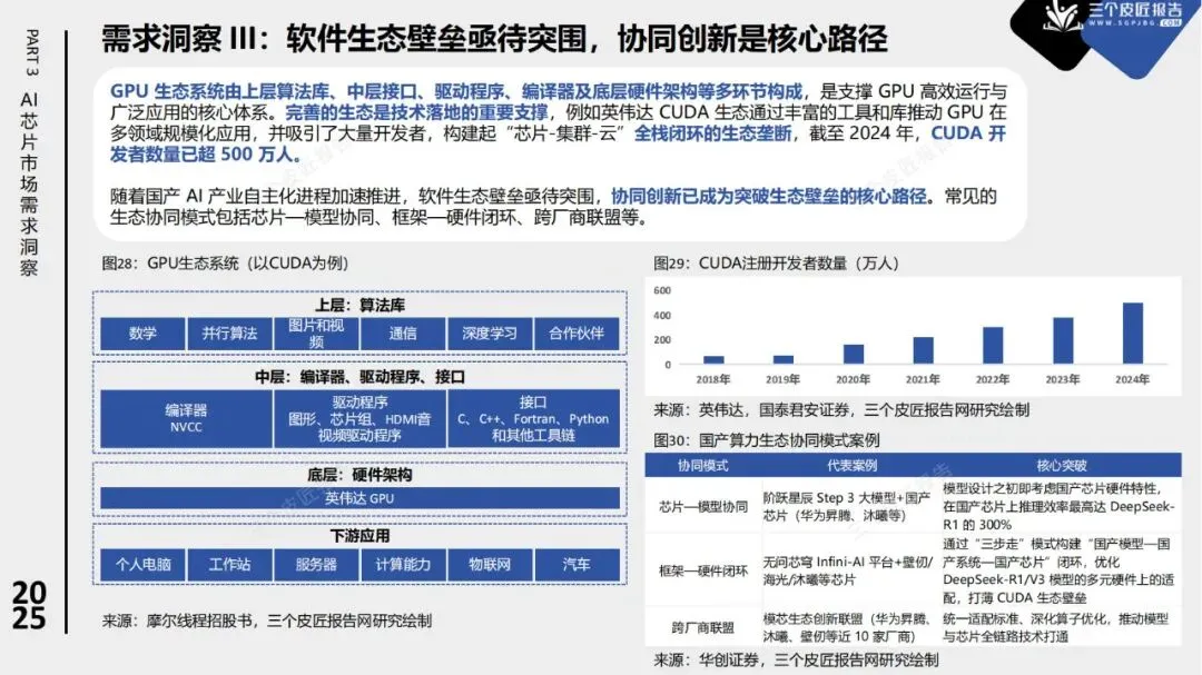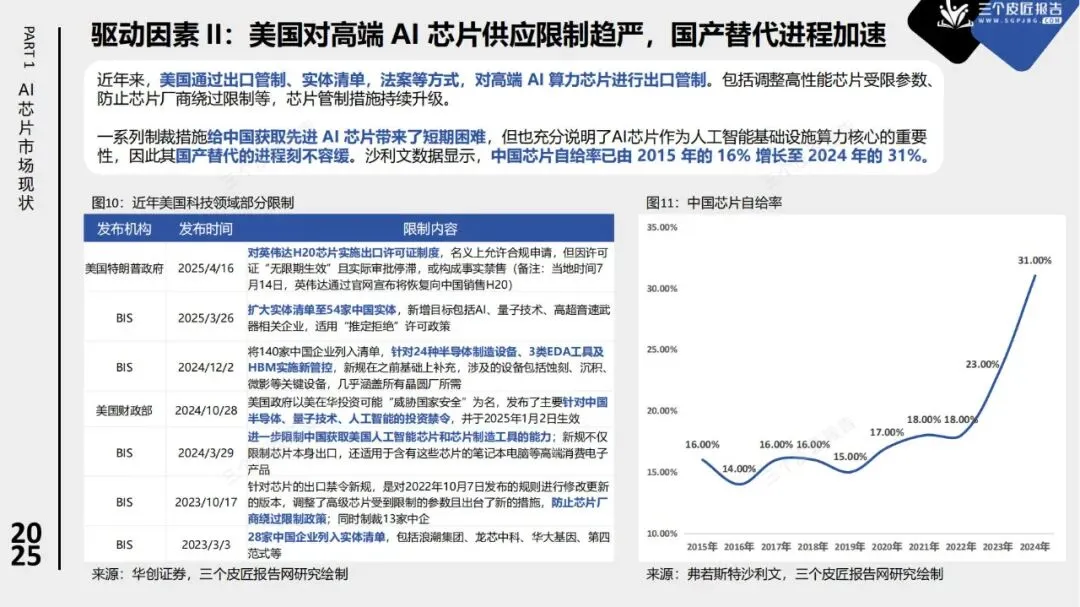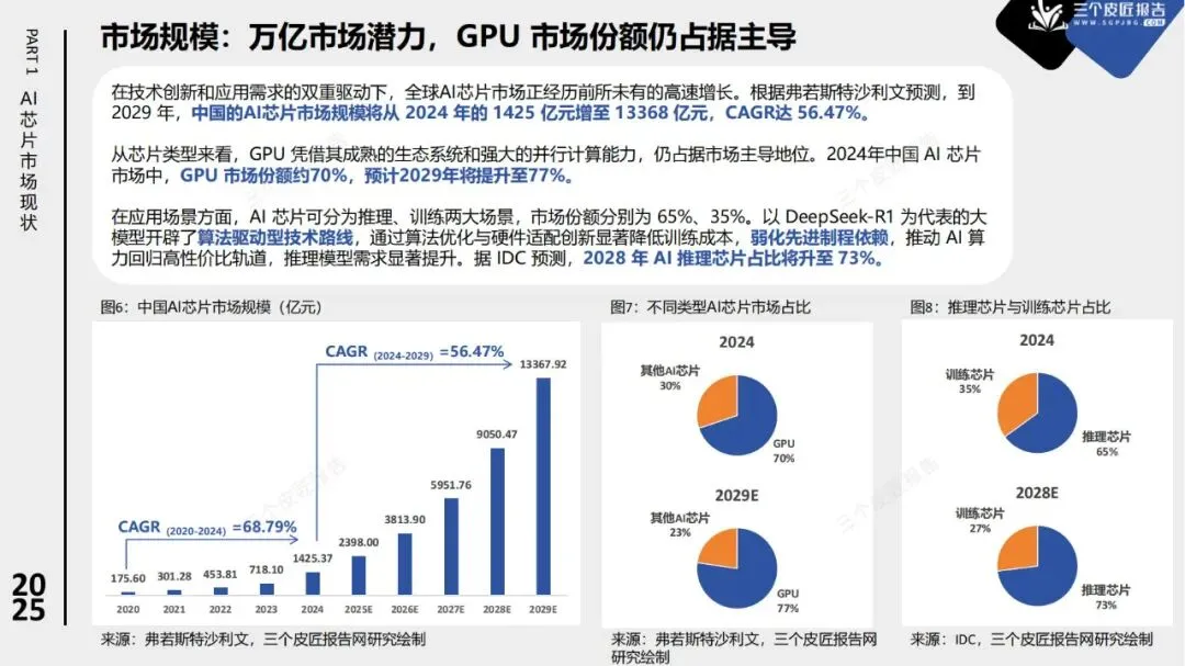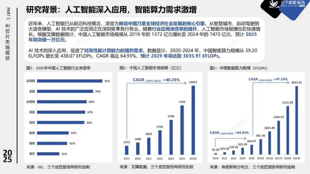 AI技术的深入应用,促进了对高性能计算能力的强烈需求。数据显示,2020-2024 年,中国智能算力规模从 59.20ELFOPs 增长至 438.07 EFLOPs,CAGR 高达 64.93%,预计2029 年将达到 3035.91 EFLOPs。