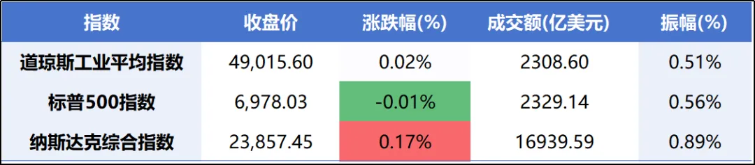 隔夜美股:美股三大指数高开后震荡整理,收盘基本持平。美联储宣布维持联邦基金利率目标区间在3.5%-3.75%不变,符合市场预期。尽管标普500盘中一度突破7000点大关创历史新高,但市场整体表现谨慎。个股方面,存储概念股延续强势,英特尔大涨超11%,英伟达涨约1.6%。