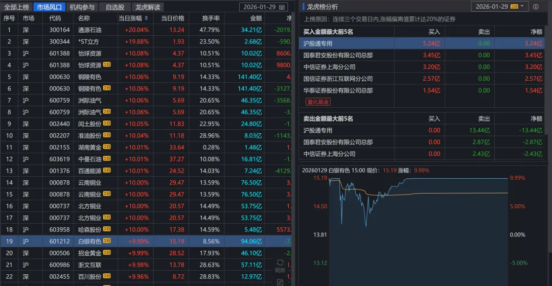 贵金属板块:板块涨幅8.04%,白银有色8连板,中国黄金5连板。国际金价持续攀升创历史新高,地缘政治不确定性加剧避险需求。