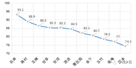 二是各街道农村人居环境满意度评分整体较好。本次问卷调查数据显示:全区农村人居环境整治效果满意度平均得分为82.5分。在全区11个街道(景区管理局)中,农村人居环境整治效果得分居前三位的是石井、蒋村和玉蝉街道(图2)。