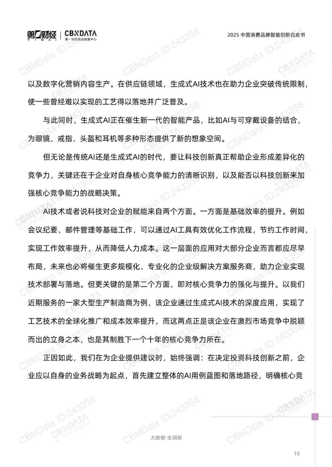 消费市场变革: 需求侧:消费者偏好从“人找货”转向“货找人”,决策路径融合情感与算法驱动,场景体验打破线上线下边界。 供给侧:AI等技术重构企业价值链,涵盖研发、生产、供应链、营销等环节,推动降本增效与差异化竞争。 关键趋势: AI深度融合:智能终端与AI Agent普及,催生新品类如AI玩具、VR设备。 绿色消费科技:新能源与低碳产品成为增长点,反映可持续发展需求。 全球化与本土化融合:中国数字营销模式反向输出,提升国际竞争力。 消费者画像: 五类人群:包括注重家庭效率的“松弛品质家”、追求性价比的“清醒精算党”、青睐新鲜体验的“潮趣探路人”等,反映需求多元化。