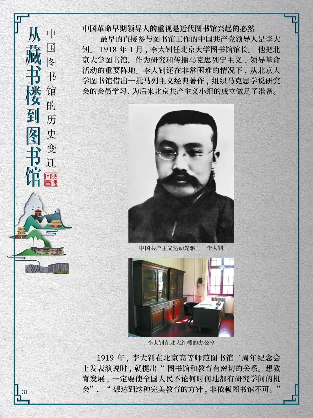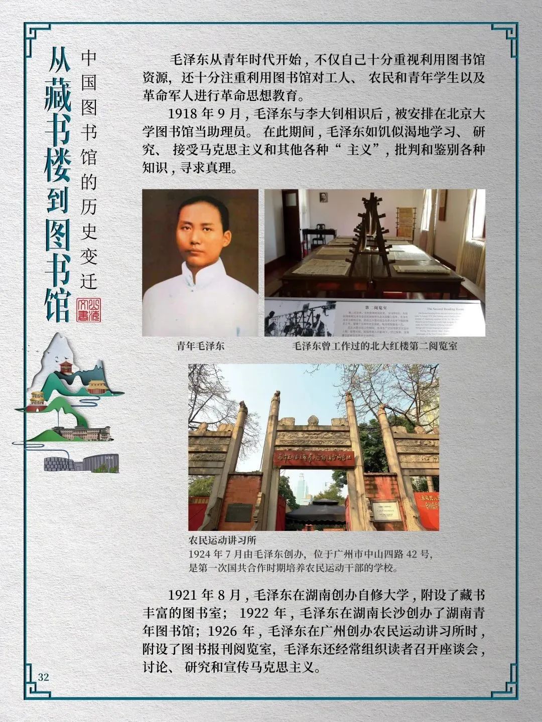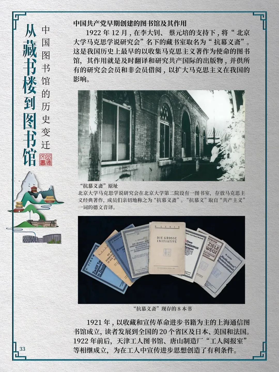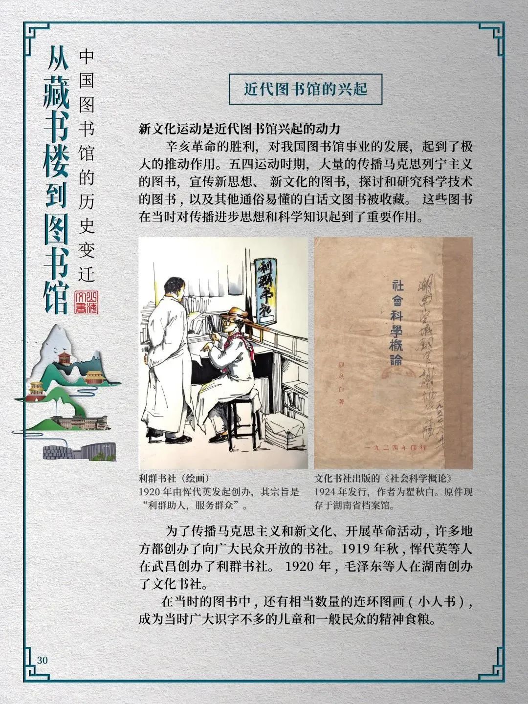 为此,莲池区图书馆举办“从藏书楼到图书馆——中国图书馆的历史变迁”展览,用图文并茂的方式同读者们一起探寻中国图书馆从古至今的发展轨迹,揭示华夏文明历经五千年风雨而延绵至今的文化基因。