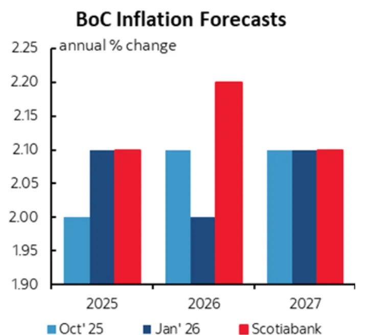 外部增长与内部预测的差异: 央行上调了美国、欧元区和中国的经济增长预测,这对作为一个贸易国家的加拿大通常是利好,但央行并未同步上调加拿大经济增长预测。这可能隐含了对贸易环境不确定性的折价。