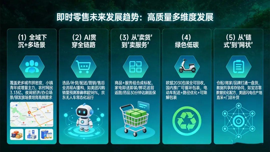 即时零售的未来不再是单纯 “扩规模”,而是朝着 “高质量、多维度” 发展,这 5 个趋势一定要盯紧