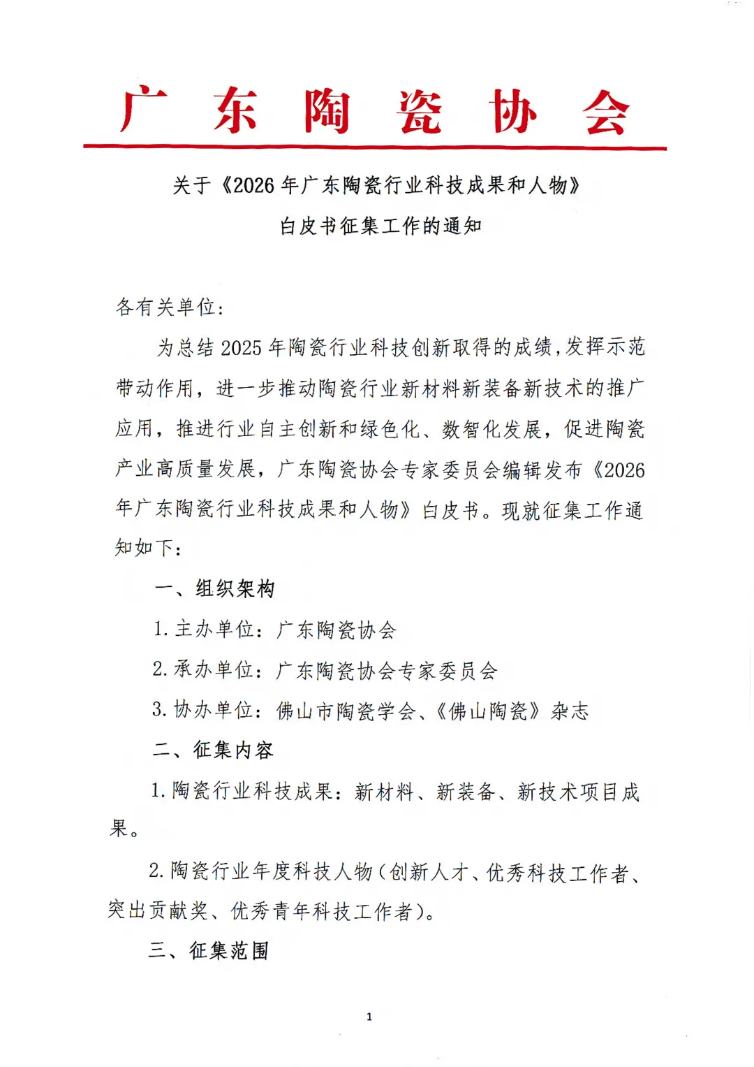 2026年陶瓷科技白皮书征集通知