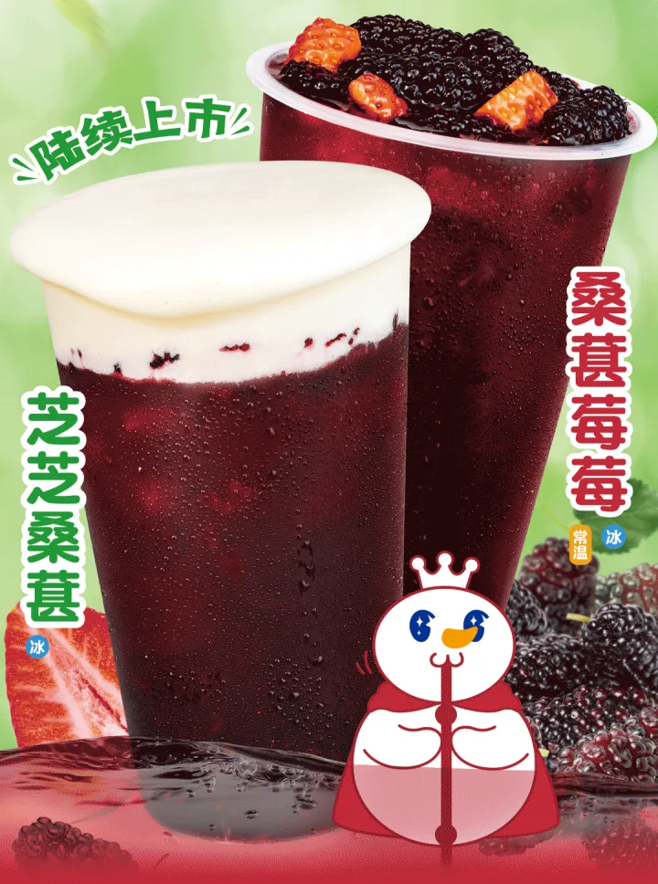 在事件不断发酵成功抓取大众注意力后,蜜雪冰城趁热打铁揭晓变黑谜底:雪王晒黑是因为去摘桑葚了,顺理成章地推出桑葚系列新品,直接刺激了消费者的购买欲。