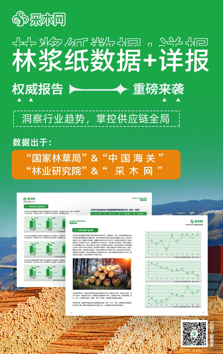 为此,采木网携手国家林草局、林业研究院、中国海关,联合打造覆盖木材全产业链的权威数据产品——《林浆纸权威数据报告》。本报告系统整合四方权威数据,深度解析行业动态,旨在为木材从业者提供精准、前瞻的决策支持,助力企业穿透信息迷雾,把握市场脉搏。