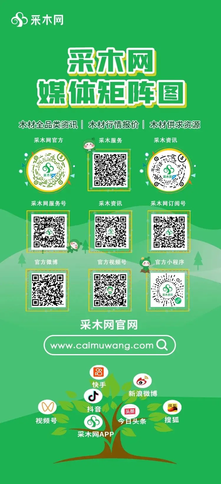 关注我木材全产业链综合智能服务平台,专注提供更新更全国内外木材资讯、木材行情分析。买木材卖木材,就上采木网,微信搜索“采木资讯”小程序,全国木材行业采购订单售卖信息一触即达!