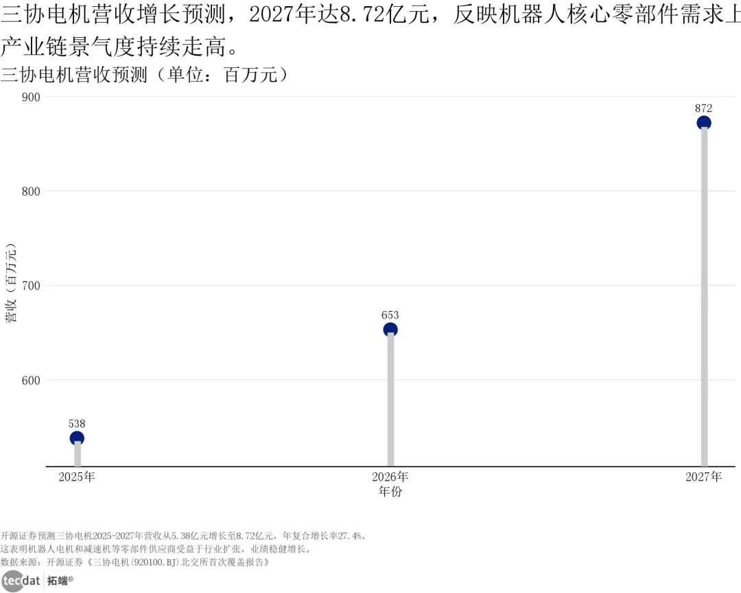三协电机营收增长预测指数曲线图图表6数据EXCEL及图表PDF模板已分享到会员群3秒解读:三年营收预计增长超2倍,电机业务成为核心增长引擎。对应人群行动建议:投资者可关注三协电机等细分龙头,分享电机国产化红利;机器人本体企业可提前锁定供应链,保障电机供应稳定。