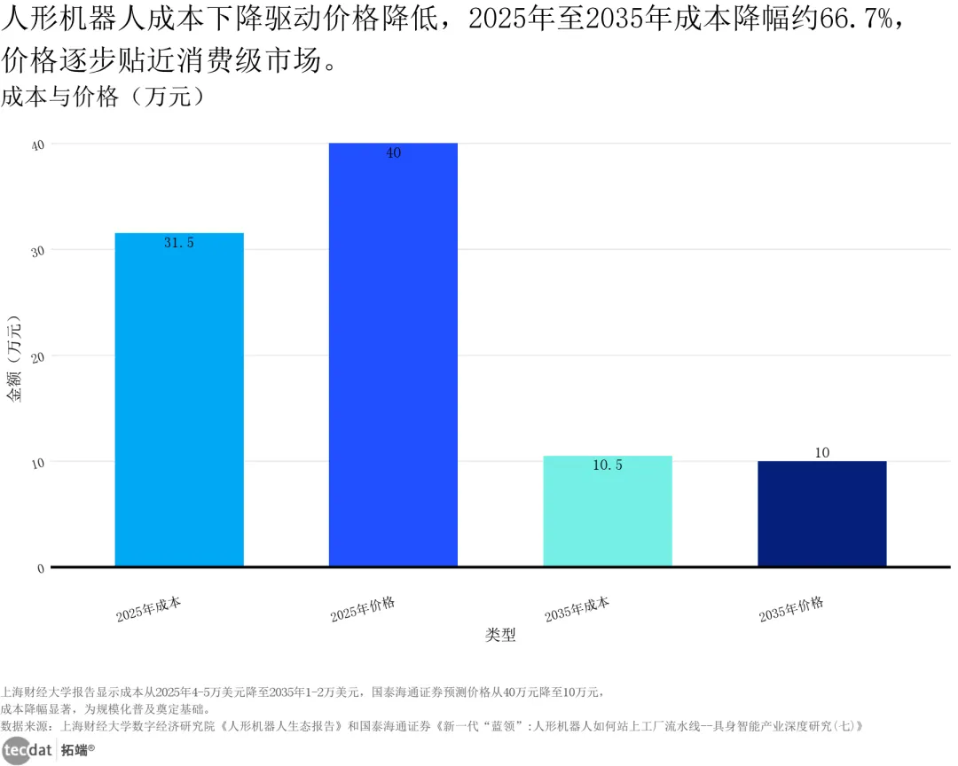 人形机器人要实现2年回本的商业化目标,售价需降至10万元级别,且效率达到人工水平。当前主流产品售价仍在30-50万元,降本路径清晰:通过规模化量产摊薄成本、优化供应链管理、简化技术路线(如轮式人形机器人较双足成本降低30%以上),成为工业场景首选。