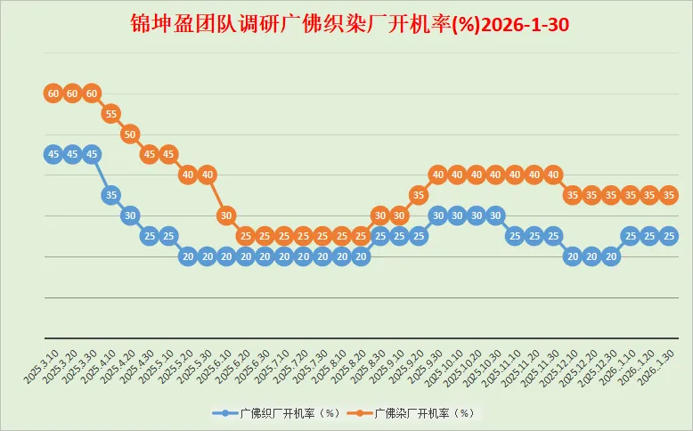 2,大圆机、横机开机率:平均2~3成左右,延续淡季走势,秋冬季面料基本已停,春夏面料1X1罗纹开机稍多,棉拉架及双纱平纹少量。