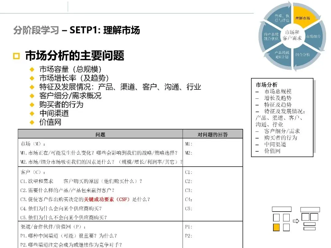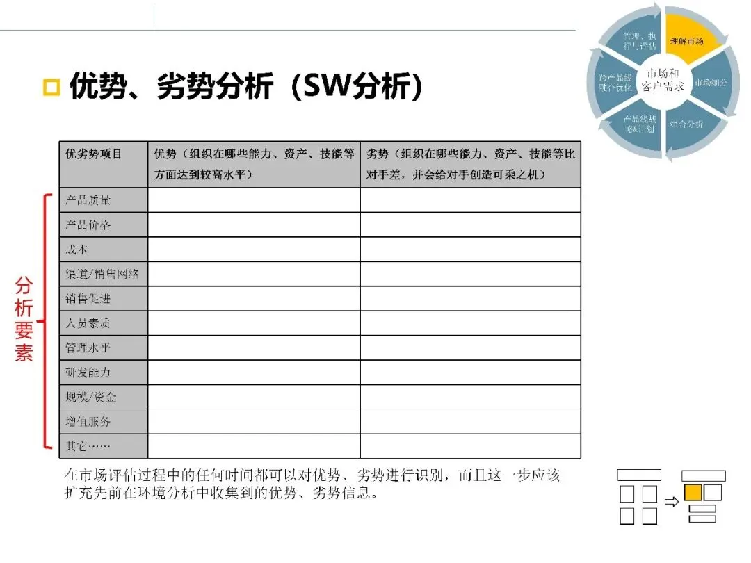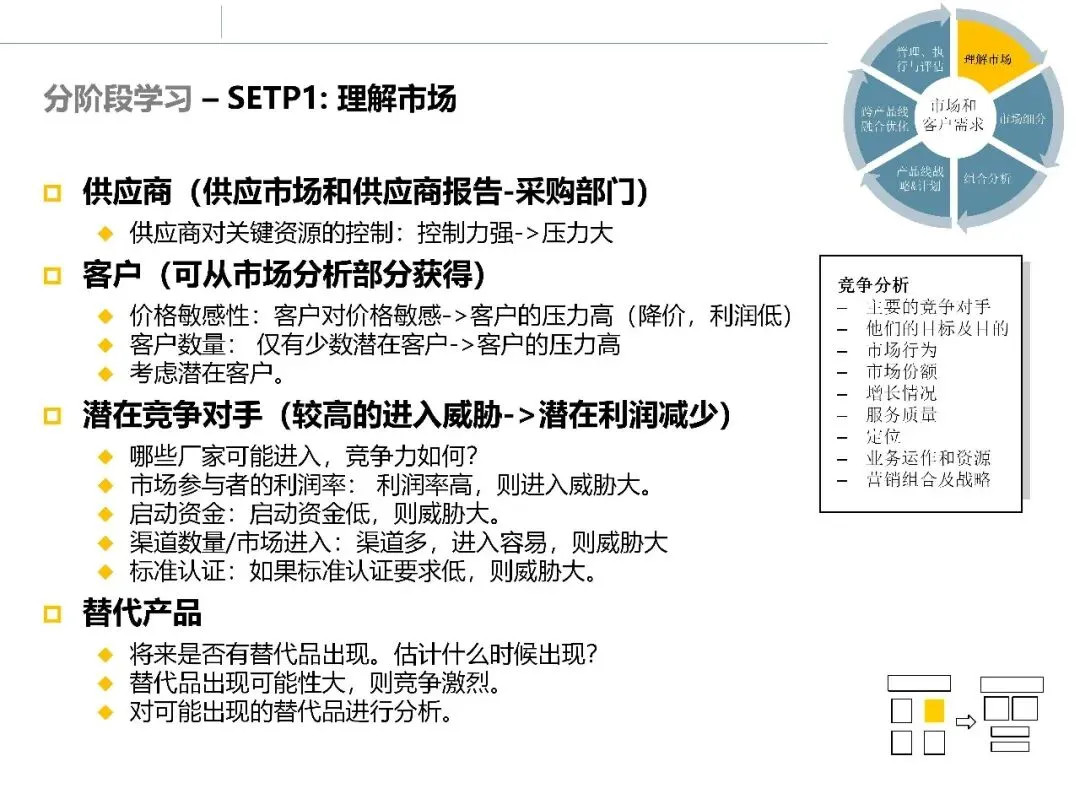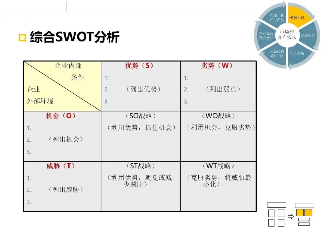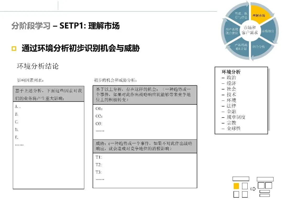 在完成环境、行业和客户层面的调研后,市场调研并未结束。真正困难的部分在于:如何将大量分析结果整合起来,形成清晰的市场判断和选择依据。