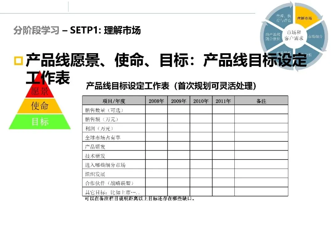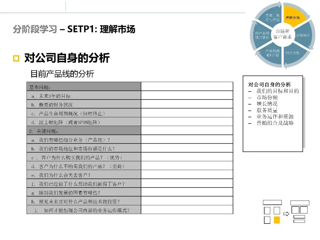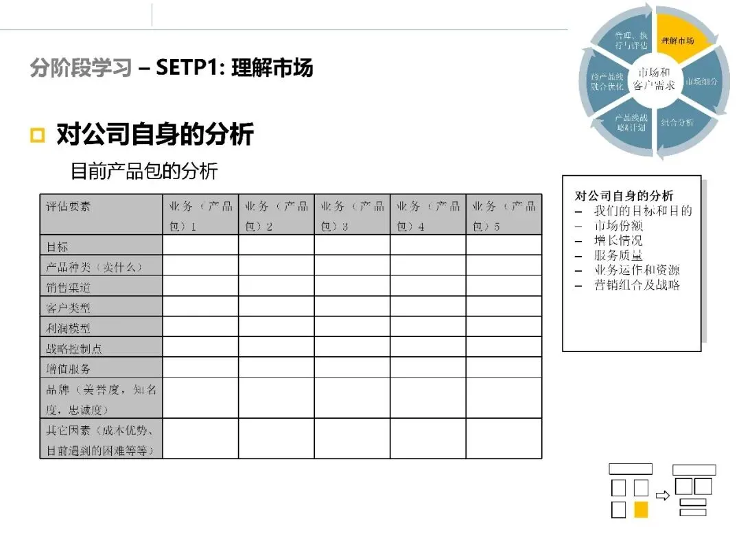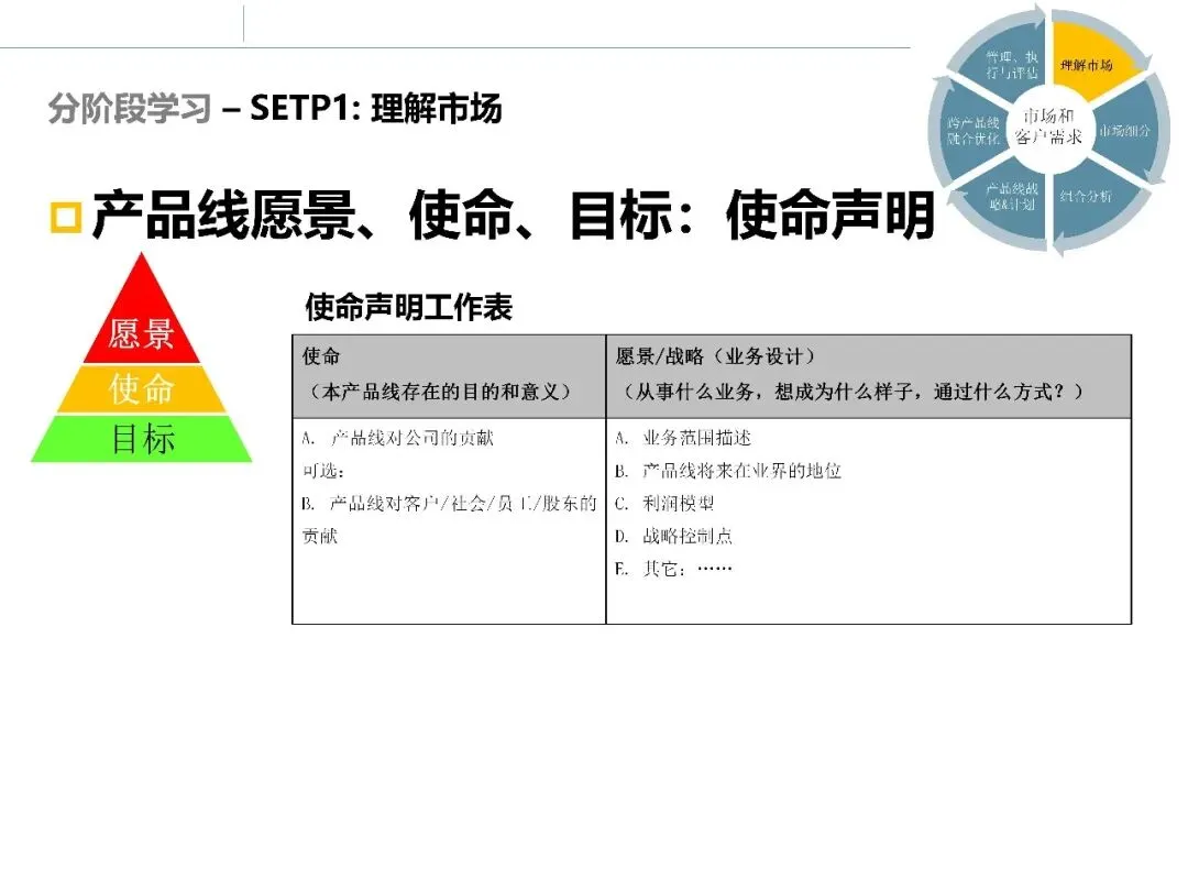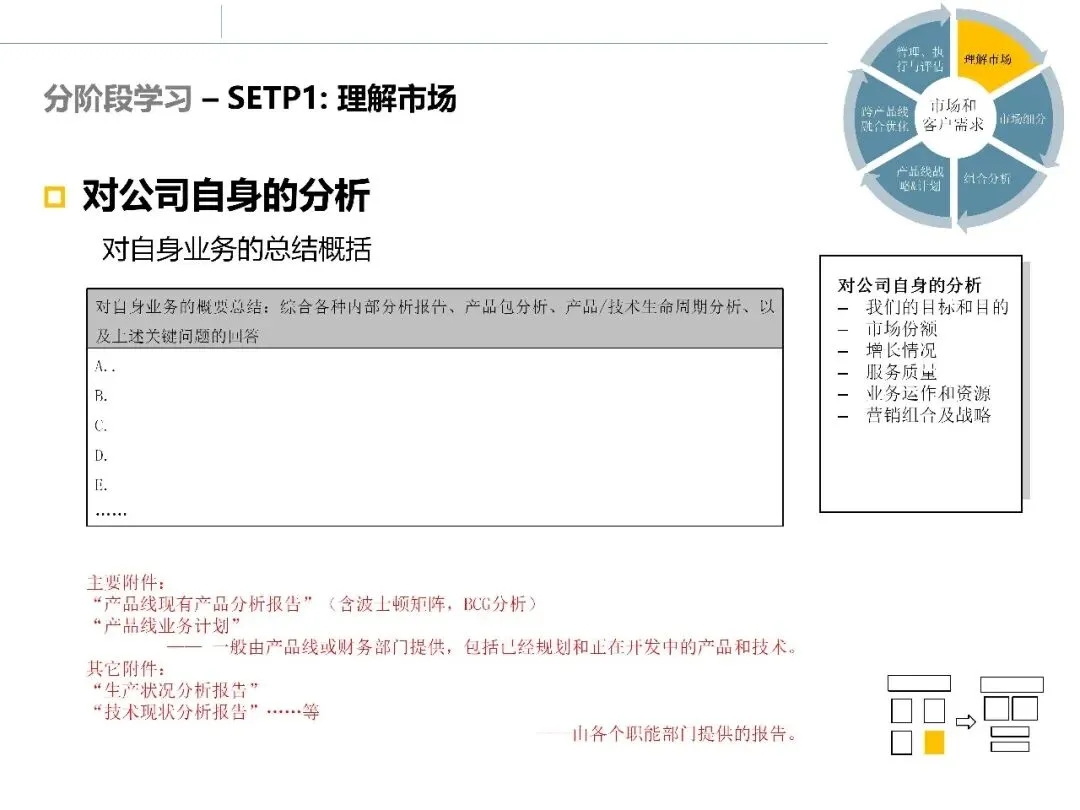 在完成环境、行业和客户层面的调研后,市场调研并未结束。真正困难的部分在于:如何将大量分析结果整合起来,形成清晰的市场判断和选择依据。
