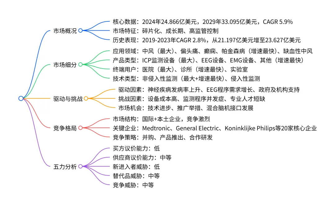 设备成本高:EEG 设备价格介于 99-2.6 万美元,EMG 设备 2500-1.4 万美元,ICP 监测手术成本 450-750 美元。 专业人才短缺:美国神经科医生需求 2025 年将达 2.144 万人,当前培训名额不足,技术人员缺口显著。 程序并发症:EMG 可能导致出血、感染,ICP 监测存在感染、出血风险。 - 市场机会