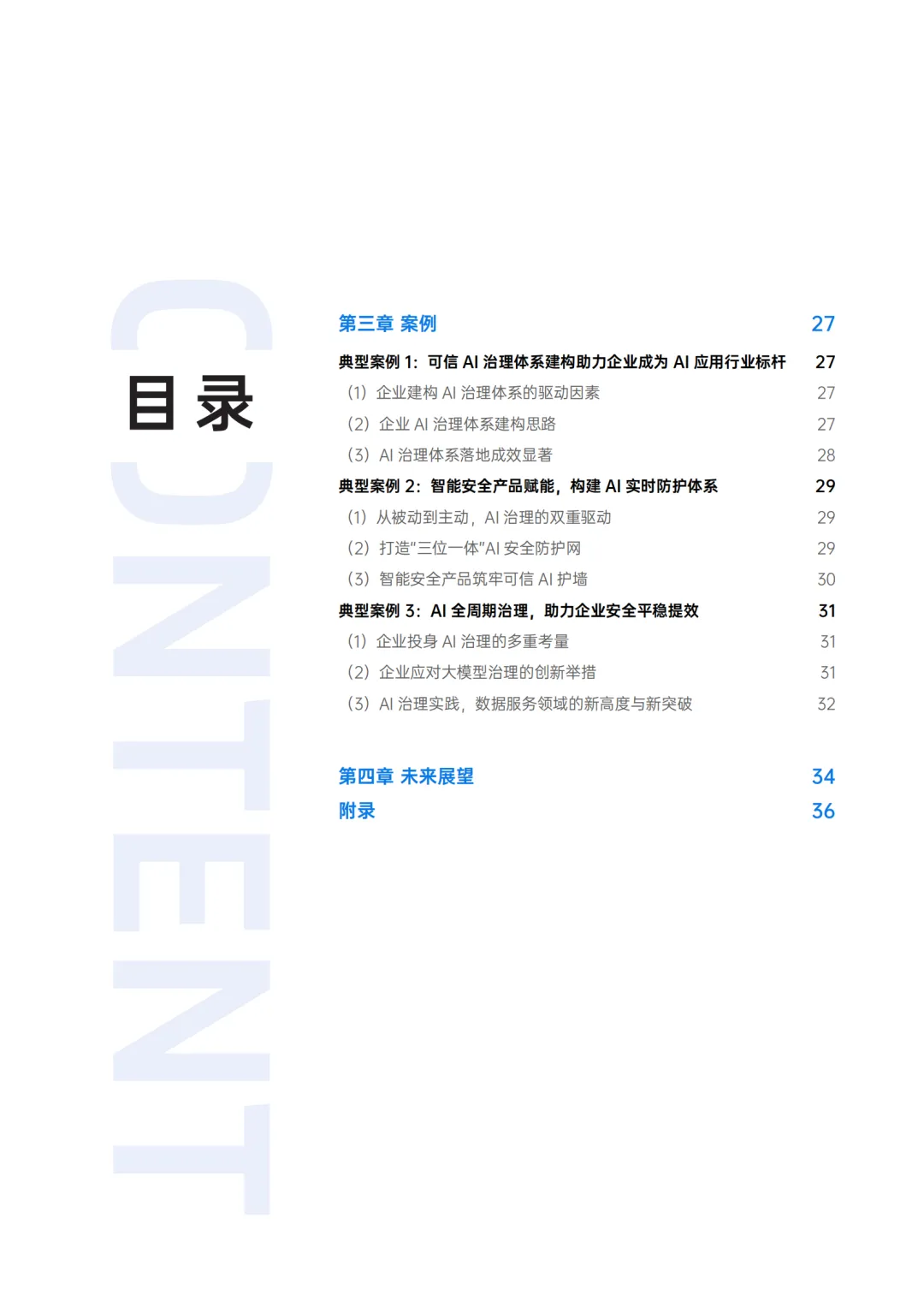 报告还分享了三类典型案例,包括媒体企业构建全生命周期 AI 治理体系、网络安全企业打造 “三位一体” 防护网、科技企业实施 AI 全周期治理,为行业提供了实践参考。