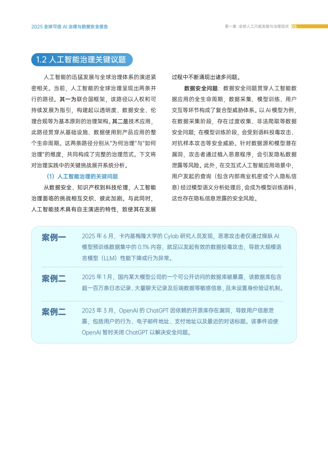 《2025 全球可信 AI 治理与数据安全报告》由安永(中国)企业咨询有限公司与上海赛博网络安全产业创新研究院联合编写,立足多维度视角,系统剖析了人工智能治理的现状、风险、案例及未来趋势。