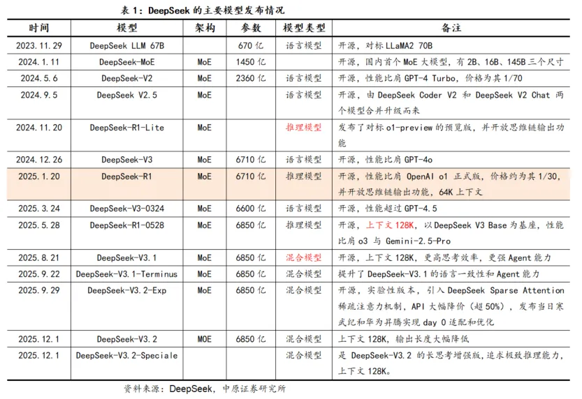 此前我们在专题报告中分析了DeepSeek在R1之后进行的重要发展动向,包括: