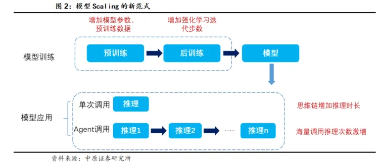 (3)大模型发展路径的探索:2025年12月1日,DeepSeek发布了V3.2和V3.2-Speciale,同时进行了更多关于模型发展路径及Scaling的有效性的探索。V3.2并没有针对测试集的工具进行特殊训练,是真实获得的泛化能力,证明了强化学习有效性。同时在模型训练方面,V3.2验证了扩大后训练强化学习带来的模型能力提升路径(DeepSeek-V3.2把相当于预训练成本10%以上的算力投入在了后训练的强化学习中),同时DeepSeek也计划加大预训练规模来实现模型能力更大的提升。DeepSeek通过在强化学习中使用合成数据,带来了DeepSeek-V3.2在Tau2Bench、MCP-Mark和MCP-Universe基准测试中的性能显著提升,取得了在真实环境中进行强化学习所无法获得的能力,证实了合成数据的发展潜力。(详见《计算机行业月报:手机端AI应用加速,DeepSeek将加大预训练规模》)