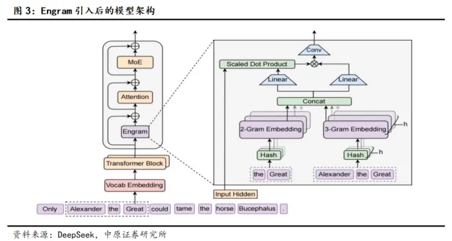 当前主流的大语言模型在面对知识类的问题时,仍然需要动用宝贵的推理资源通过计算来模拟检索过程,造成了大量的资源浪费。考虑到大模型的稀疏性不应该只体现在计算上,还应该体现在分配上,DeepSeek本次提出了“条件记忆”的新机制,并引入了名为“Engram”的条件记忆模块,依靠稀疏查找来检索固定知识的静态嵌入。