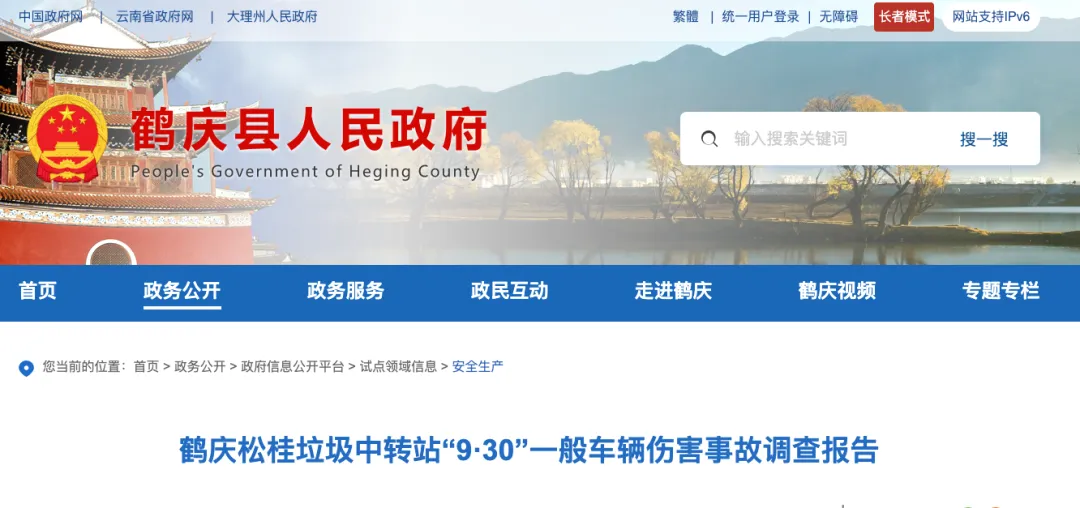经调查认定,鹤庆县松桂镇垃圾中转站“9·30”一般车辆伤害事故是一起流浪人员未经许可擅自进入作业区,垃圾运输车辆倒车时碾压致其死亡的生产安全责任事故。
