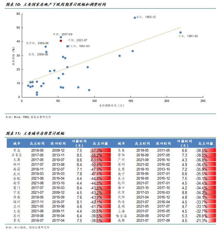 事实上,由于各国房地产见顶时市场泡沫化程度并不相同,房价下行期间各国的跌速也存在差异,房价累计跌幅和下跌周期时长的可比性相对有限。