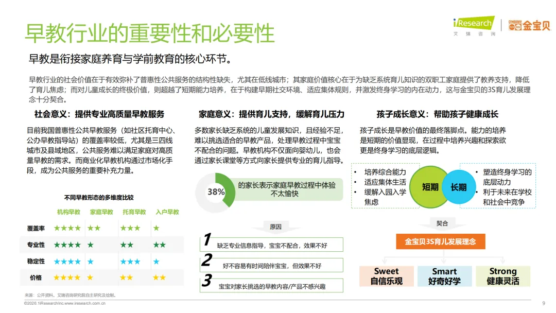 近日,艾瑞咨询与金宝贝联合发布《2025年中国早教行业白皮书》。报告基于行业数据与家长调研,聚焦 0-6 岁婴幼儿早教需求,解析行业转型方向与消费新特征,揭示 “专业为基、体验为核、生态为翼” 的发展逻辑,为行业参与者提供参考。