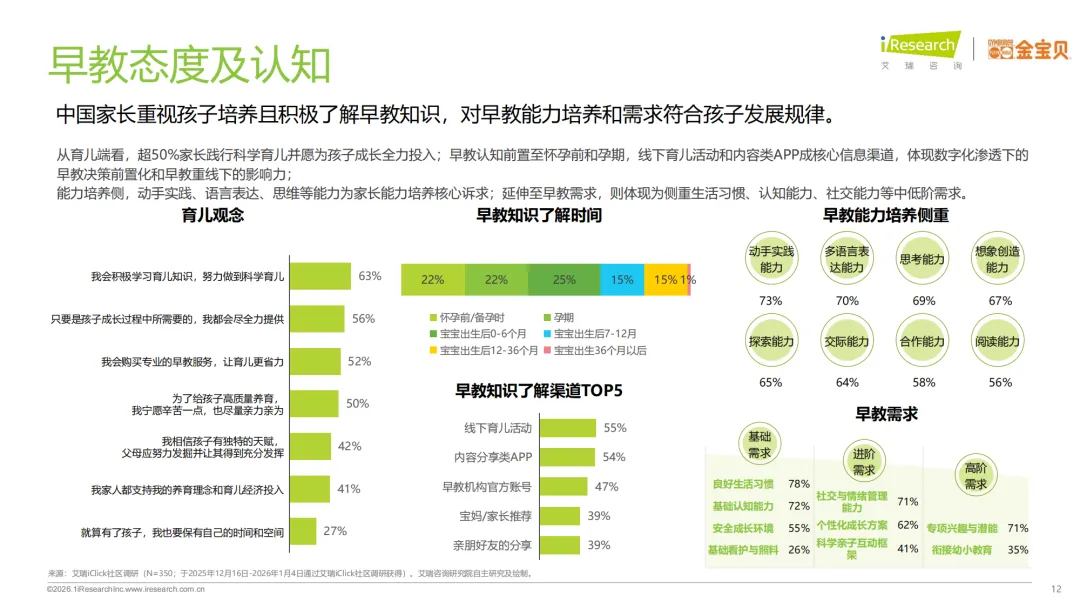 从客群特征来看,核心客群为 31-35 岁已婚高学历女性(本科及以上占 80%),79% 家庭月收入超 1 万元;孩子集中在 0-3 岁早教核心阶段,家长重视科学育儿,73% 关注动手实践能力,71% 在意社交与情绪管理培养。