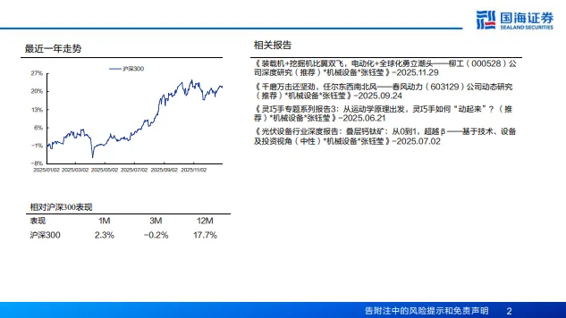 2)工具行业:行业目前出口风不量:1)工程就量:2026年有望您来国内外共振,内需显苏(同期满楼与存量额。改变封闭与超大工程修化、二手挖机加速比湾处于B的左侧,工具行业终端库销比处于历史正常水位,静候降息周期拉动终端需求,建议重点关注:出海景气,板块估值分位点处于中位,板块估中枢有望继续提升;龙头企业估值不贵,工程机械(SW)交易并不拥挤。