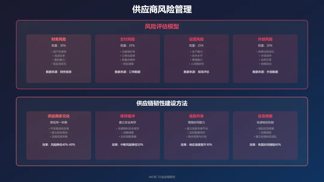 四、供应商风险管理:风险评估模型、供应链韧性建设方法