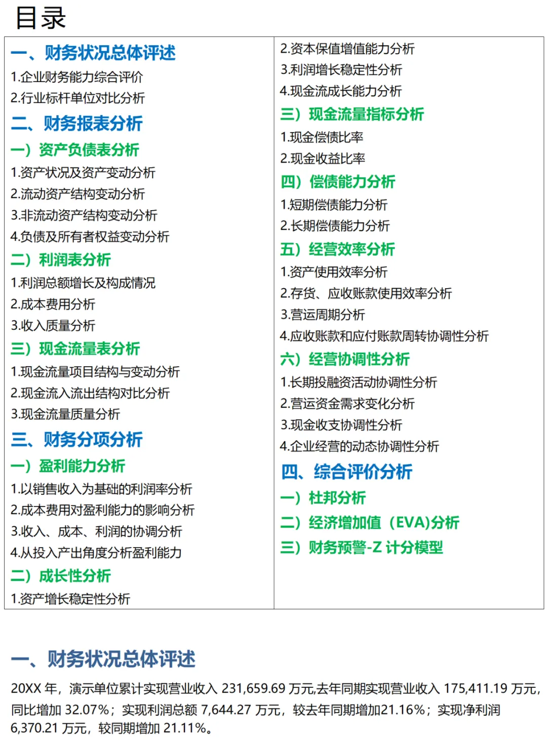 今天给大家分享26年企业年度财务分析报告,含三大报表分析案例,此报告对公司的财务状况、经营成果和现金流量进行全面、系统的分析,以评估公司的财务健康状况、经营绩效和资金流动性,为企业管理层、投资者和其他利益相关者提供决策依据,还没有写报告的财务朋友可以拿来用!