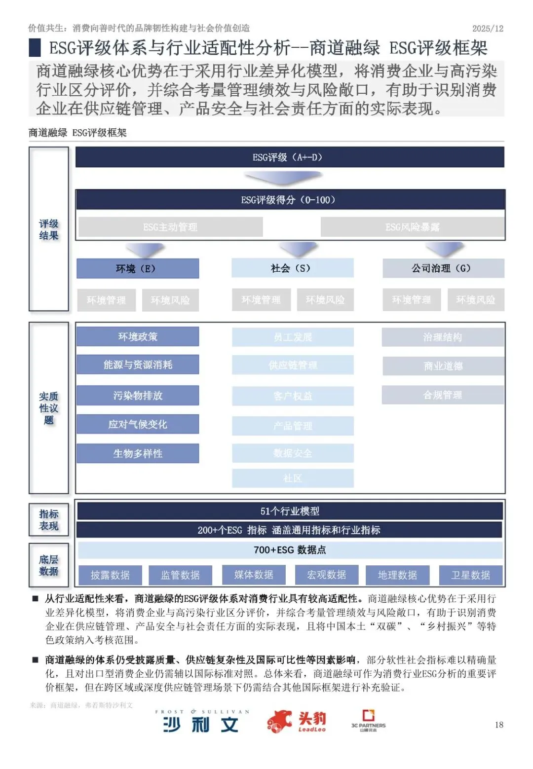 ⦁ ESG评级体系多样化:国际评级机构如MSCI、标普全球等主导全球市场,中国本土机构如商道融绿、万得ESG等依托政策适配性与数据优势快速发展。