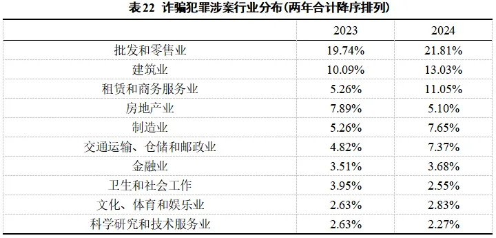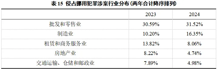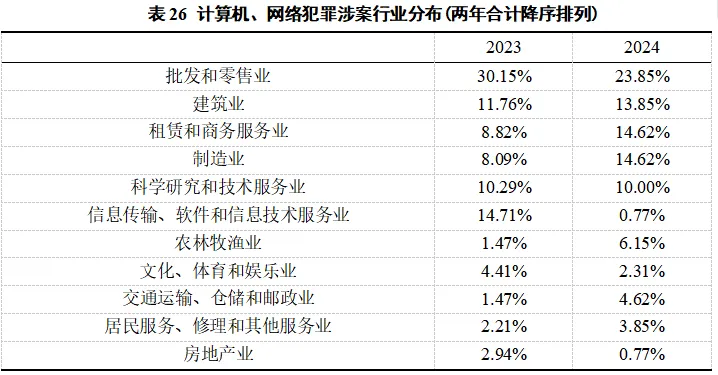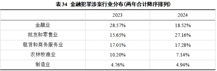 2023、2024年,在涉案企业所处行业明确的案例中,涉案行业分布情况详见表41(仅列前5):