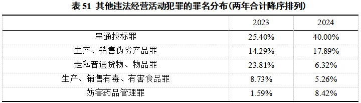 本报告中的其他非法经营活动犯罪,包括符合本报告“企业犯罪”定义但未被归入前10类犯罪的23个罪名,各罪名分布情况详见表51(仅列前5):