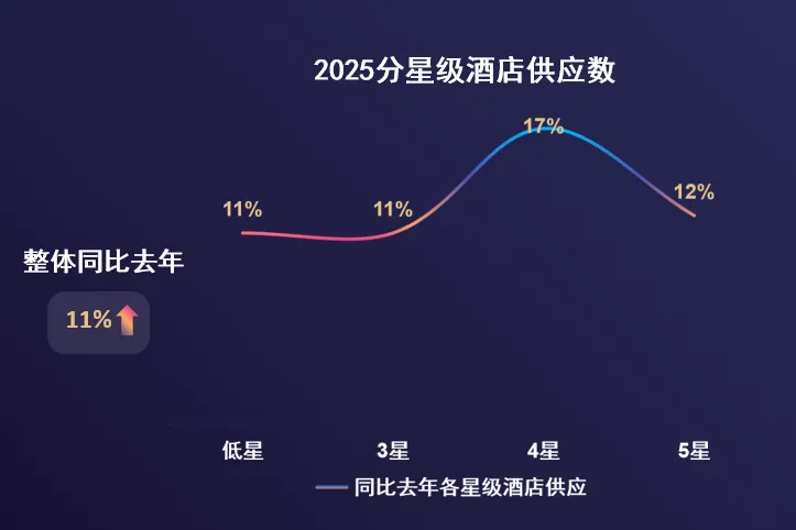 ①2025年酒店供应量呈现稳步增长的局面,酒店数创新高,同比增速达11%。