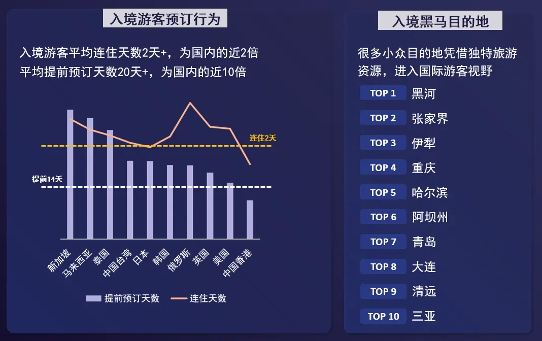 入境用户行为呈现出提前预订周期长、连住天数高、注重质价比的特征: