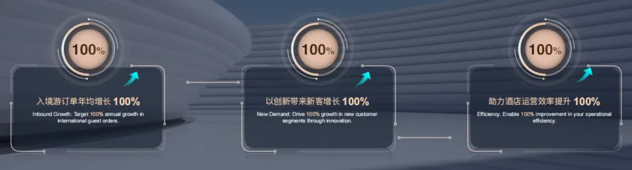 面对趋势,平台推出“智旅未来”酒店赋能计划,围绕“创价值、提人效、拓增量”三大核心方向,计划在3年内助力20万个酒店达成3个100%。
