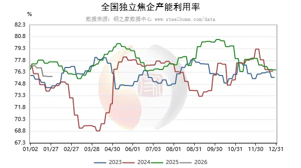 (1)独立焦企产能利用率%:本周200家75.76降0.04。华北103家78.77降0.01;华东26家80.99升0.03;中南16家69.58升0.41;西南11家66.43降0.47;东北12家60.03持平;西北32家68.92降0.32。