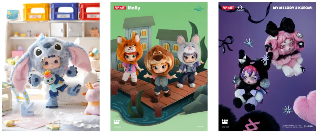 在搪胶毛绒品类中,IP 联动正是驱动品牌增长的核心引擎,主要通过三种路径展开: