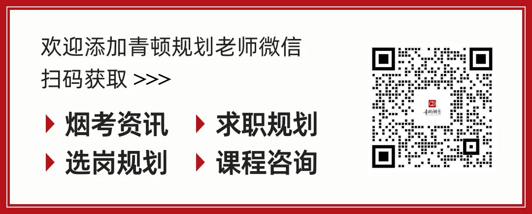 ◎ 欢迎添加青顿规划老师微信丨可免费获取烟考资讯、求职规划、选岗规划、课程咨询