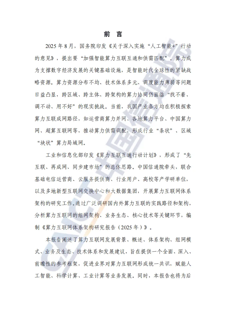 《算力互联网体系架构研究报告(2025年)》系统阐述了算力互联网的发展背景、体系架构、核心技术及建设进展等关键内容,为行业发展提供了全面参考。