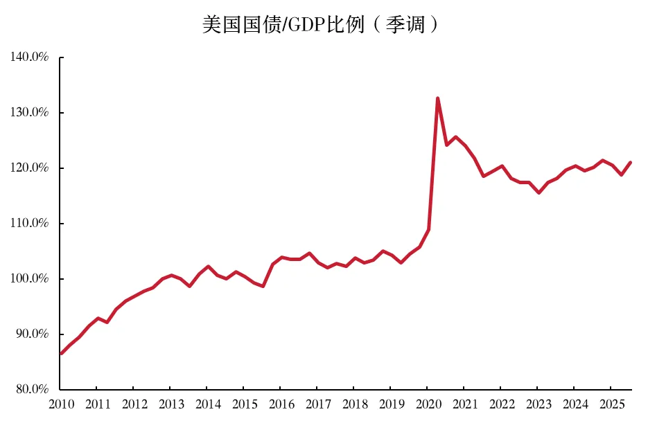 图表2:疫情后美国国债占GDP比例走高至120%左右