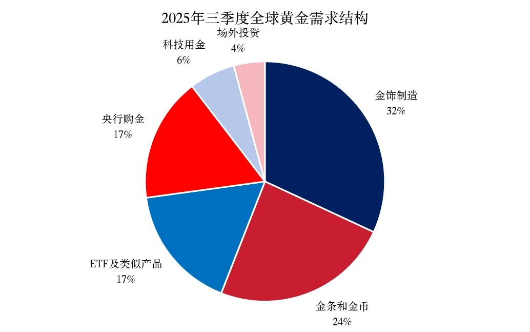 金饰、金条与金币、ETF、央行购金等