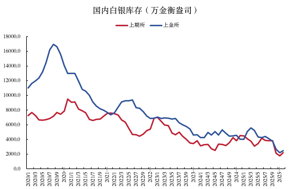 图表22:国内白银库存2025年再次大幅下降
