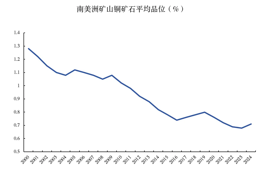图表32:21世纪以来南美洲矿山铜矿石品位持续下降