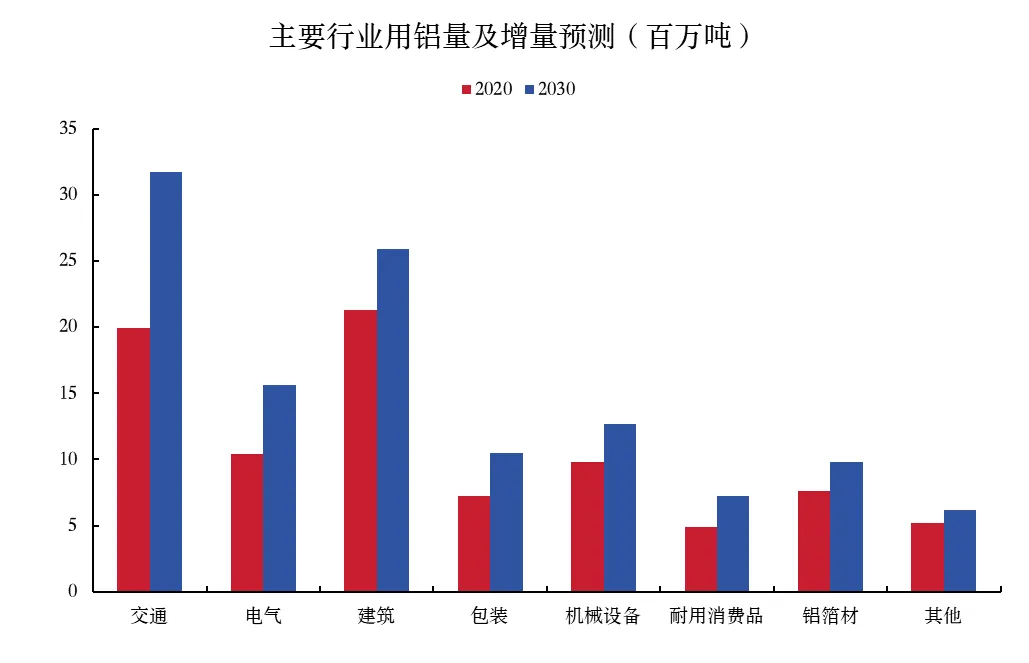 图表34:铝需求的增量主要来自交通、电气和建设需求