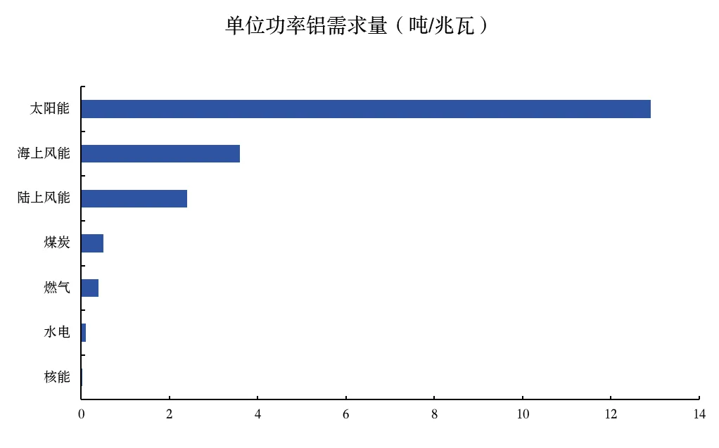 图表36:光伏发电单位功率铝需求量是其他方式的数倍