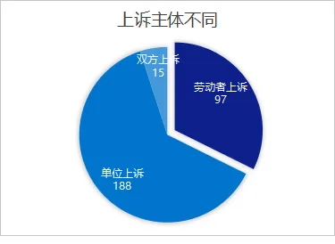 可见,在解决劳动纠纷的过程中,各方的冲突较为明显,不论是用人单位还是劳动者均希望通过二审程序查明案件事实、解决争议。用人单位上诉意愿远高于劳动者,超六成上诉案件由用人单位单独发起,反映出用人单位对一审判决的异议度更高,该数据也间接反映出,劳动争议一审裁判中,法院对劳动者的诉求支持率可能相对更高,使得用人单位成为上诉的主要发起方。