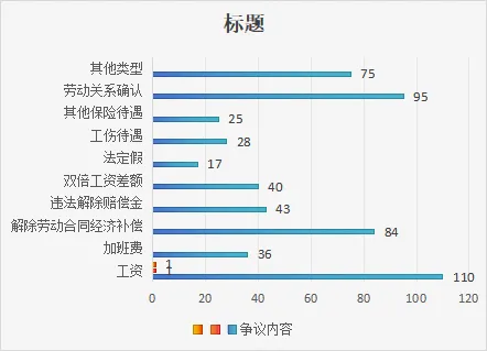 就案件争议内容来看,因一个案件可能存在多个争议焦点,故笔者综合300份裁判文书,就争议焦点的分类归纳如下:请求支付拖欠工资(包括出勤工资、绩效工资、提成、生活费、年终奖、产假工资)的110个,支付加班费(包括延时加班费、休息日加班费、法定节假日加班费)的36个,支付解除劳动合同经济补偿的84个,支付违法解除赔偿金的43个,未签订书面劳动合同要求支付双倍工资差额的40个,支付未休年休假工资的17个,因工伤保险待遇产生纠纷的28个,因其他保险待遇产生纠纷的25个,劳动关系确认案件95个,其他类型劳动纠纷案件75个。